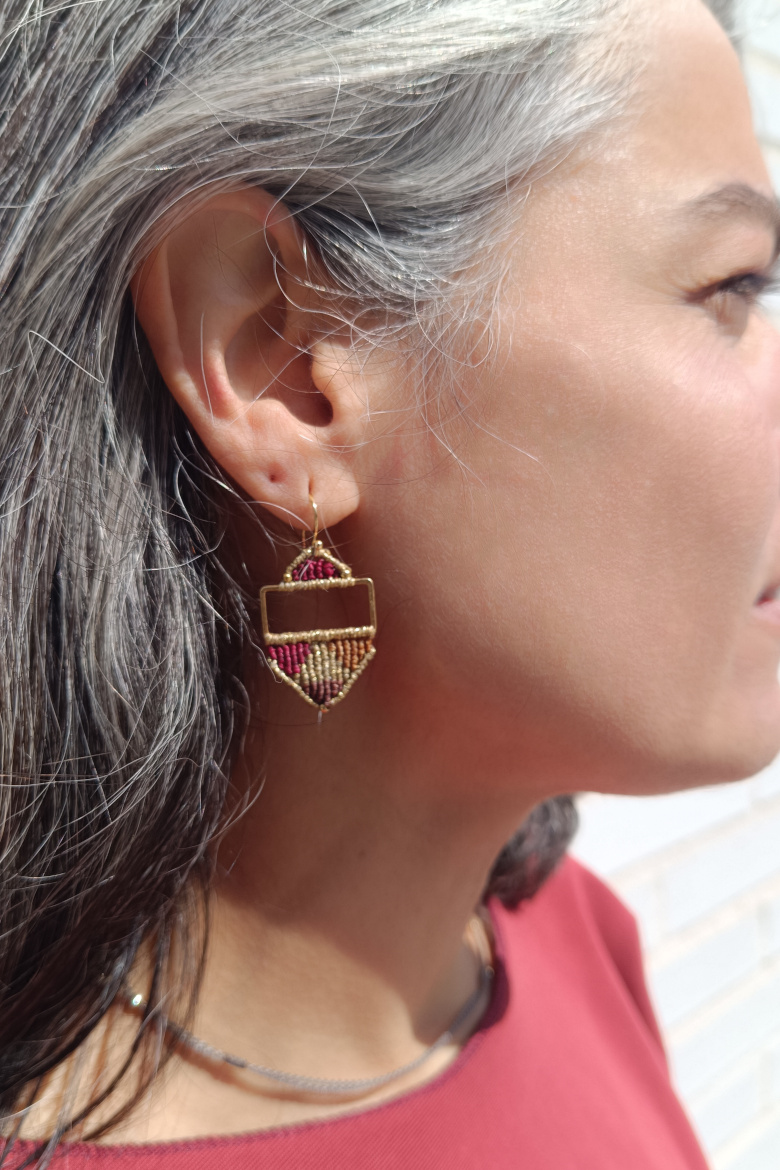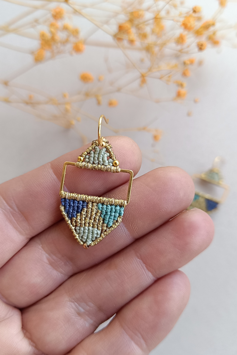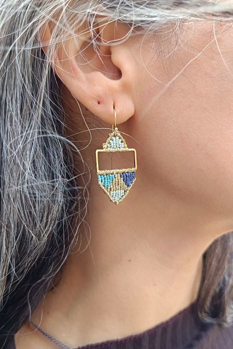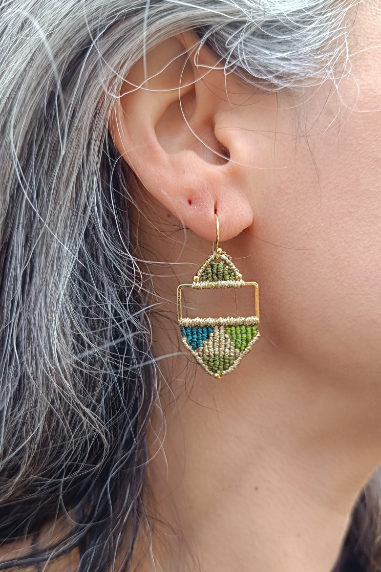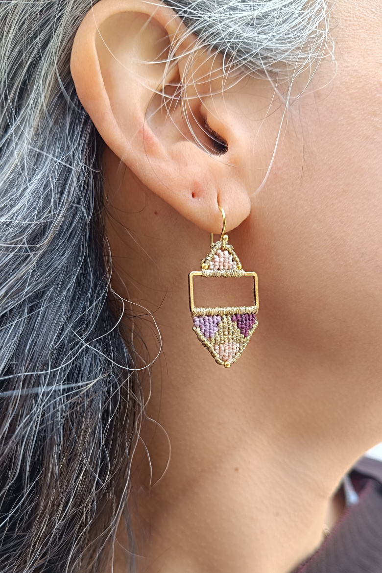 Pendientes KILIM, un pendiente de micromacrame con patrón geométrico que combina tradición y estilo contemporáneo. Esta trama geométrica junto a la combinación de sus colores vibrantes, harán que este pendiente sea tu FAVORITO para esta temporada!