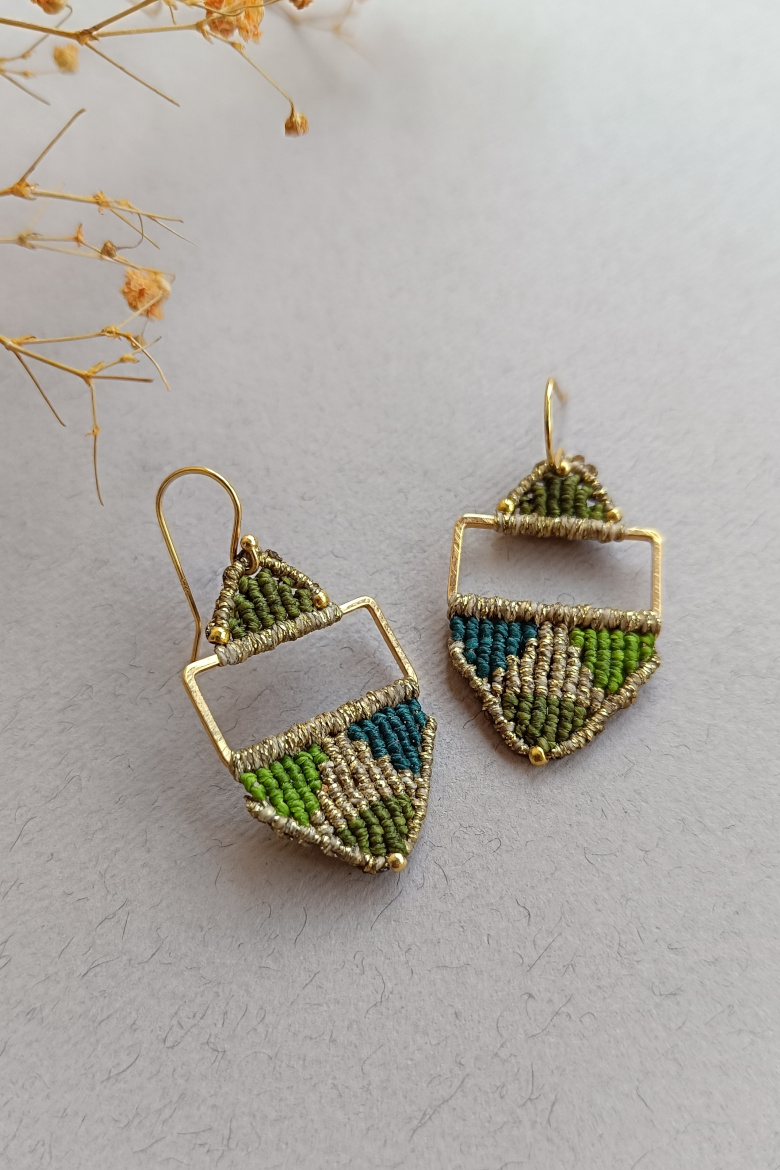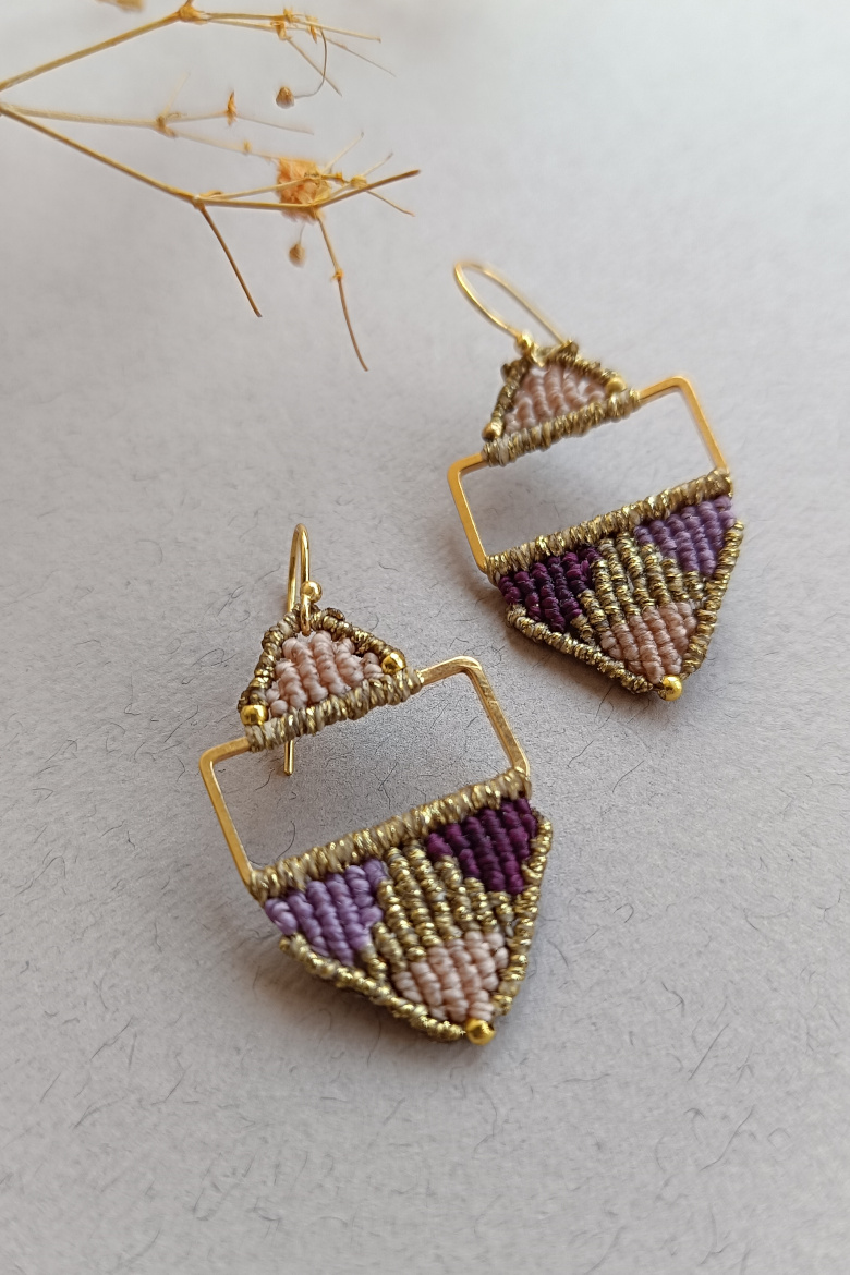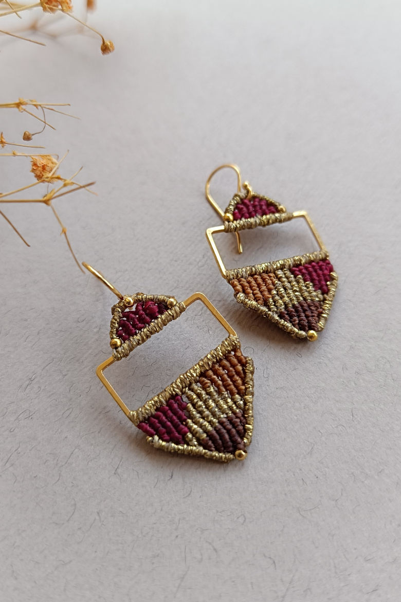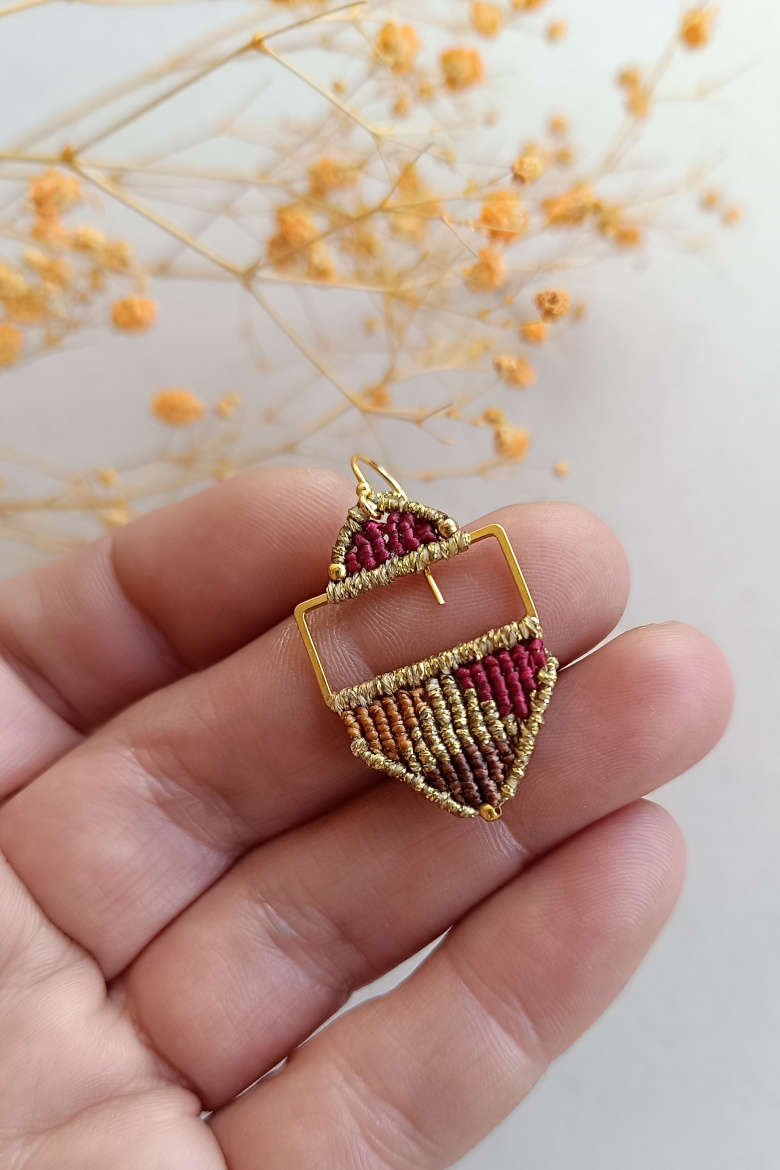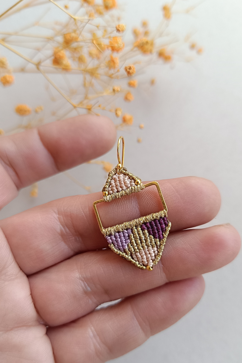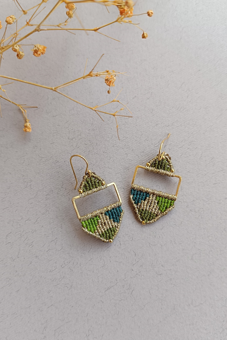 Pendientes KILIM, un pendiente de micromacrame con patrón geométrico que combina tradición y estilo contemporáneo. Esta trama geométrica junto a la combinación de sus colores vibrantes, harán que este pendiente sea tu FAVORITO para esta temporada!
