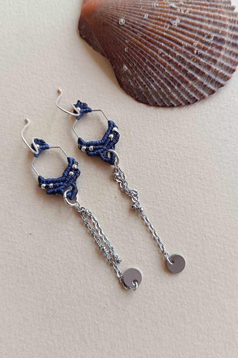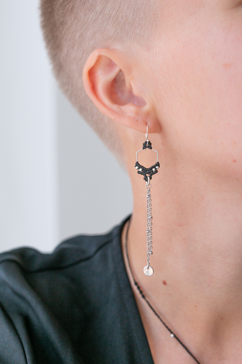 Talasa earrings. Materials: Poliester thread , Sillver 925, Steel and Brass silver cover. Handmade with Love